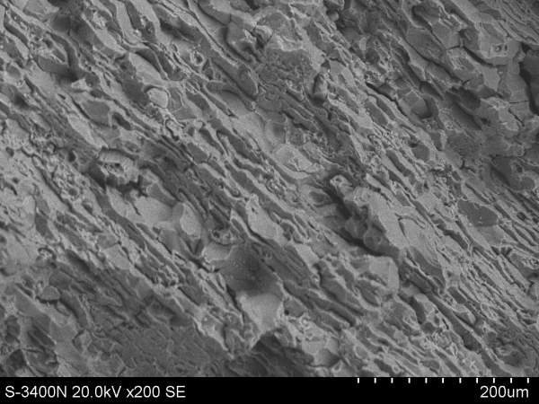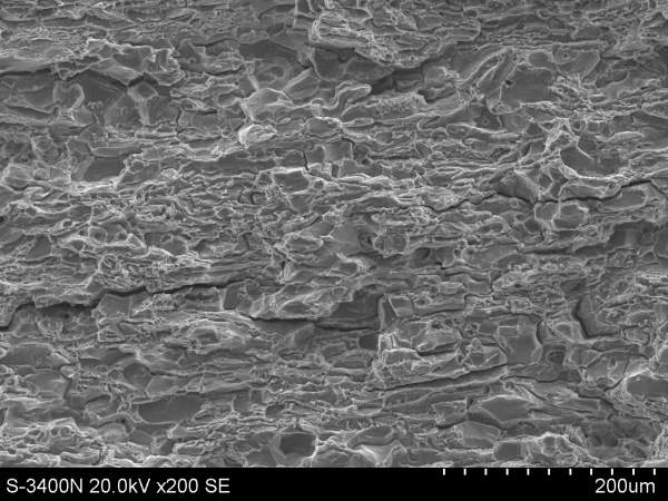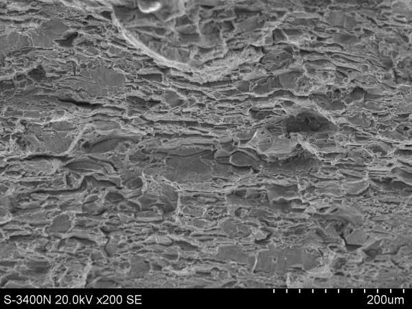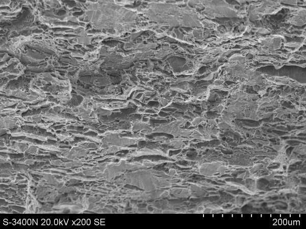 | 我也不是很懂,但以前我做过一些疲劳的断口分析,室温拉伸也做过,没有深究。一般来说,室温拉伸断口形貌似乎都是结合力学性能(强度和延伸率),像第一张照片的形貌所对应的样品应该塑性或韧性会低一些,从形貌上看几乎都是沿晶断裂,结晶状断口,第四张里面就还有一些韧窝,室温拉伸的断口分析一般也没太大的信息量,无非是描述一下韧窝、撕裂棱之类的形貌,体现材料的塑性好坏~很多文献都有,这个看看就知道该怎么说了~~当然前提是你这些是选取样品中有代表性的形貌,根据我以前做拉伸断口形貌的经验,包括疲劳拉伸的断口,如果你想找的话,同一个样品里完全可以找到不同断裂类型的断口形貌,毕竟试验不可能像理论上那么理想。当然肯定还是会有一种形貌为主,与其力学性能的主要特点符合,所以我说要找你这个样品中最具代表性的形貌,才能说明问题~ |