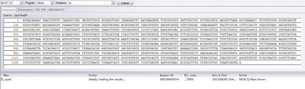 我自己也弄了一个实例,是一个细菌的基因序列(该序列在很多其他细菌基因组内都可以找到类似的序列),按着教程的步骤,把那个序列与NCBI中的核酸数据库进行海量对比(是吗???),但就是没法出现像教程里面的那个分析结果,即:Status 会显示Finished。我的例子一直都显示ready;loading the results……,或者results are on server,怎么回事??