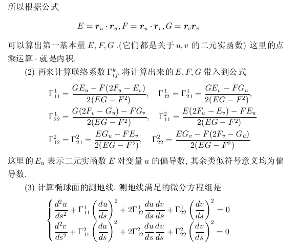 我做了一个小程序,请试用 编辑 data.input,输入x1,x2,a,b,c参数,后写的可以覆盖前面的 输出长度为length, 在 length.data 里。 运行:打开cmd,运行 slab 这个是真实的测地线距离。在 a=b=c=10的情况下测量半球距离结果为 length= 31.4159265358987 pi*a= 31.4159265358979 看看是否能解决你的问题。 |