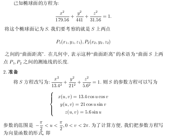 已知椭球体方程,求上面两点在椭球体上的距离...求大神们帮帮忙