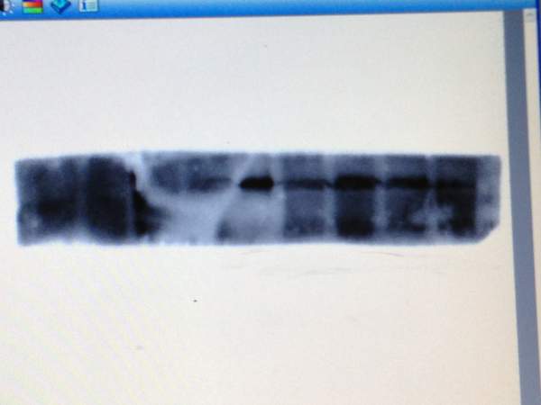 Western Blot 显影时PGDF膜上全是荧光,求解,有没有懂的呀