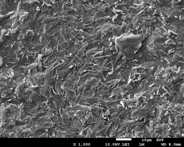 | 做了EPDM硫化样品拉伸断面的SEM,照片里满是结晶状的“胶束丛”,网上查文献还没看到这种情况的,请问是不是橡胶在拉伸的过程中发生了结晶导致的? |