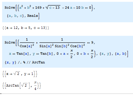 solve([1/(cos(a)^2)+1/(sin(a)^2*sin(b)^2*cos(b)^2) = 9,