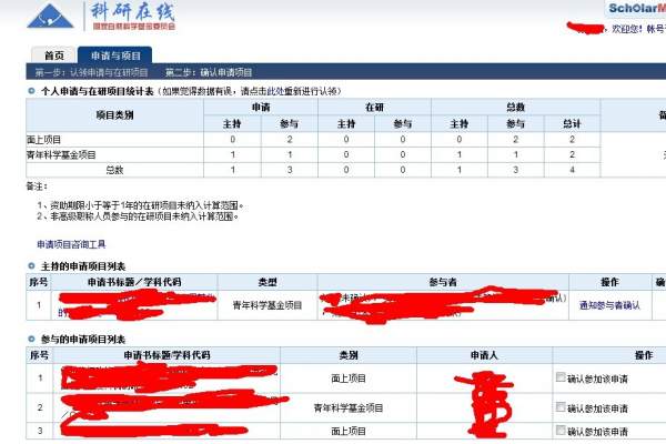 我的情况是 青基第一次申请,得知A上会通过,中了。 下面显示情况我觉得不能说明什么问题,不要再讨论科研在线什么了。 打开网站 http://scholarmate.nsfc.gov.cn/scm/index 找回密码里面输入申请时的邮箱,可以找回密码,里面会有所以今年申请和参与的项目,还有往年参与的项目。 不知道和大家的有差别吗? 里面显示如下: QQ图片20130810232032.jpg |