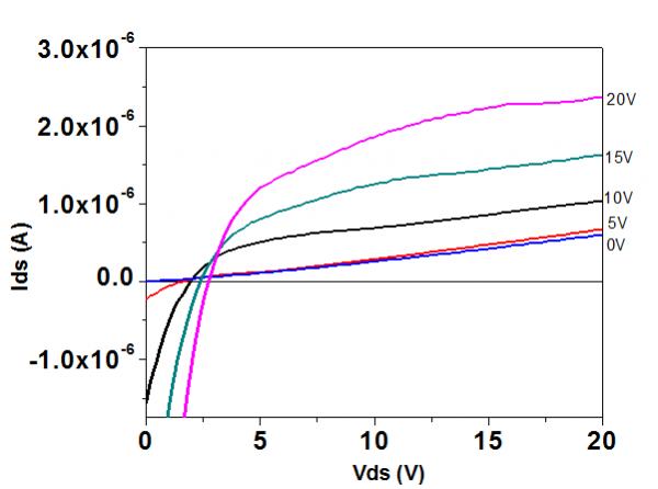 询问ZnO FET输出特性曲线(Ids~Vds)有偏移的问题。