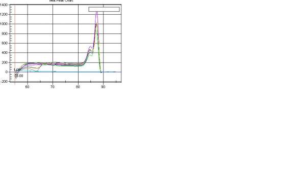 我的产物应该是后面的那个大峰,请问一下前面的那个小峰是什么啊,看溶解温度应该不是引物二聚体啊?我做普通PCR的时候没有看见非特异峰啊。有没有高人知道指点一下吧,谢谢啦!