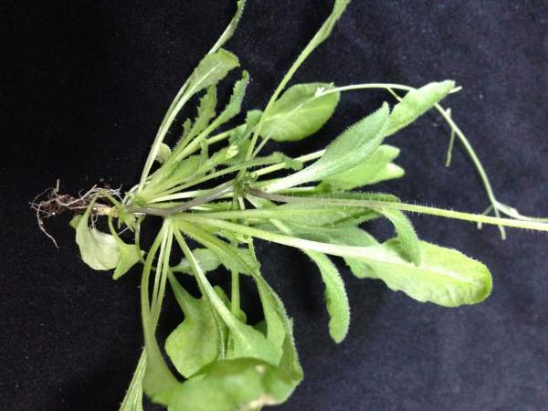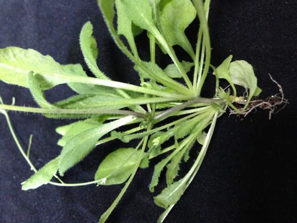 其中一个基因过表达拟南芥表现为基部分节,每节一个小植株,发育延迟(图为截面图)