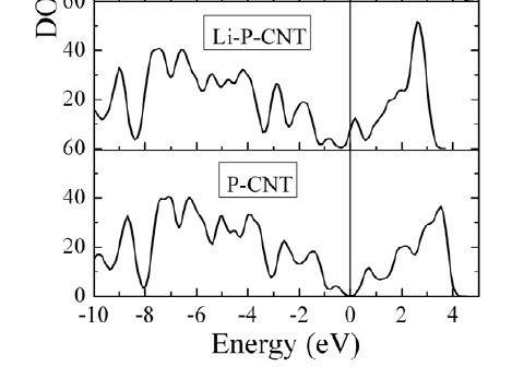 关于碳纳米管吸附Li原子后,态密度变化的问题
