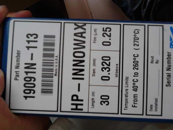 PEG柱,安捷伦原装的柱效比国产同类的高很多,所以安装的时候要注意,不然柱外效应导致峰变宽,优势就体现不出来了