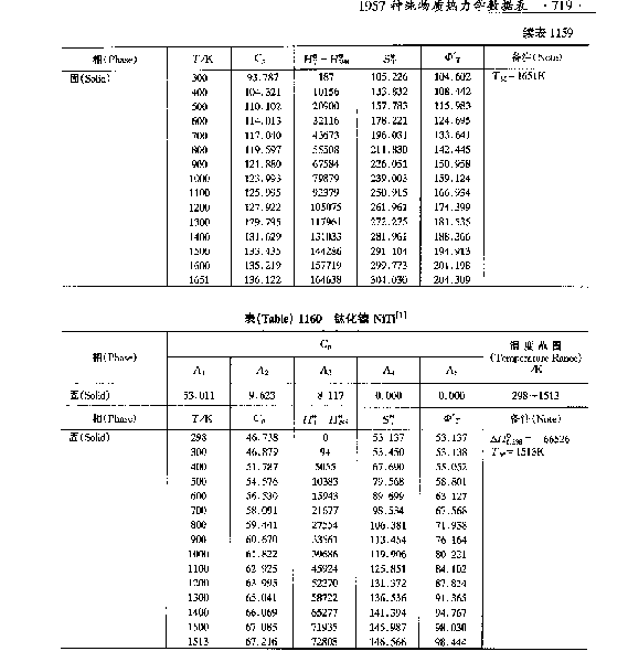 | 谁能告知在哪里可以查到,NiTi 在1800K时的热力学数据? |
