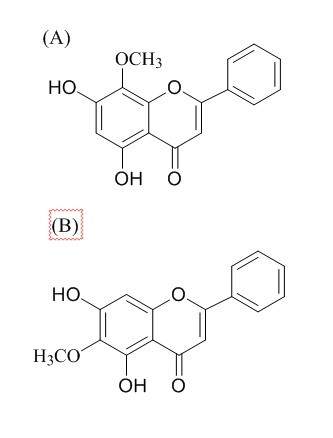 B) 千层子素: 5,7-二羟基-6-甲氧基黄酮