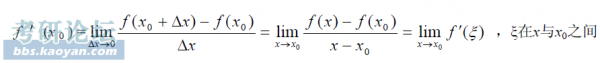 同样的问题有人换了一个方式问过, 我做了回答, 这是学了微分中值定理之后很多人都会问的一个问题. 你看这里 http://muchong.com/bbs/viewthread.php?tid=5793455&authorid=2161851 |