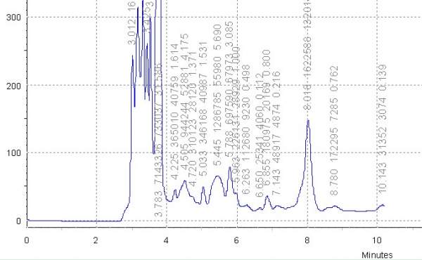目标峰出现在保留时间8分钟处,明显看出基线抬高。 流动相比例为:甲醇:8.5mM 醋酸钠溶液(磷酸调pH至4.0)=1:99,等度洗脱。 我的问题是:1,这种情况可否用手动积分定量?2,如果不可以,那如何解决基线抬高这个问题? 谢谢各位高手了。 U`KM()(MO(B6$8BMFQGSY4J.jpg |