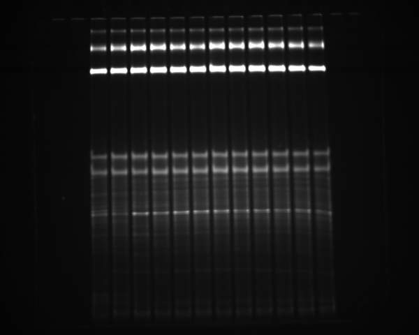 最近做了几个DGGE,结果图像都是这个样子,愁死了,不知道怎么办了,大家有碰到过这种情况的吗?以前都没有这种情况,谢谢了!