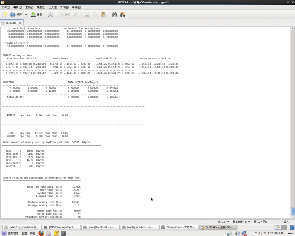 哪位帮我讲解下关于outcar中的粒子受力,实在是找不到相关资料,不胜感激啊