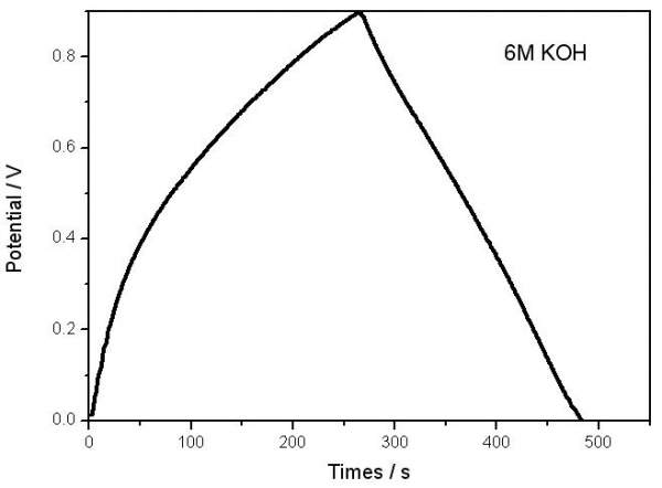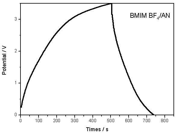 可是看文献上 ,双电层电容器都是对称的三角形或者接近对称的三角形,我们这不管是水相还是有机相电解质,都偏离对称三角形太远了。 您说的电阻挺大是从阻抗谱中得出的吧? 我觉得异常的地方有一下: (1)充电曲线上出现的大包是怎么回事,无论水相,有机相都有,最可能的原因是什么? (2)放电曲线上非常明显的电压降又是什么原因引起的,为什么有机相中的电压降相比于水相更明显? 还望您能继续提供帮助,另外,对于超级电容器的电极材料,导电性和比表面积是否有个下限,有的话,是多少?因为我看有的人说石墨烯做电极,电导率必须在30S/cm以上,比表面积需要大于200m2/g.不知这种说法是否存在?期盼您的解答。 |