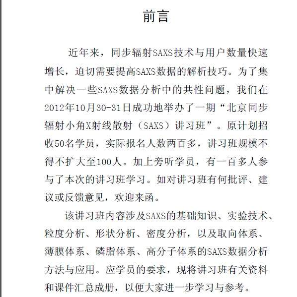 【讲义】北京同步辐射装置中心SAXS讲义