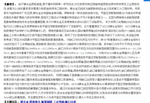 | 急求镁合金的平面应变断裂韧性KIC! |