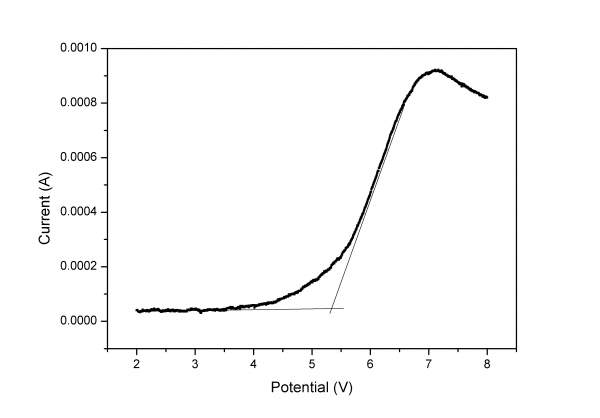 想问下电化学窗口是否有个判定标准,如上传图所示,求两条线斜线交点时窗口是5V多,但是实际上从原图上看到4V多就开始有分解了,应该用哪个值呢,谢谢。