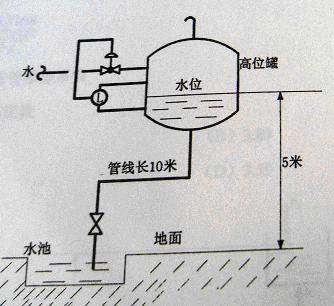 24、从敞口的高位罐向地面水池注水,高位罐液位为50%并保持平稳,高位罐液面距离地面的垂直高度为5m,管线总长度为10m,管内径为25mm;直管的摩擦系数λ=0.025,总局部阻力系数∑ξ=4.5。水池的长、宽和深分别为5m、4m和2m。如下 图所示。注满此水池所需要的时间(小时)为下列哪项数值?