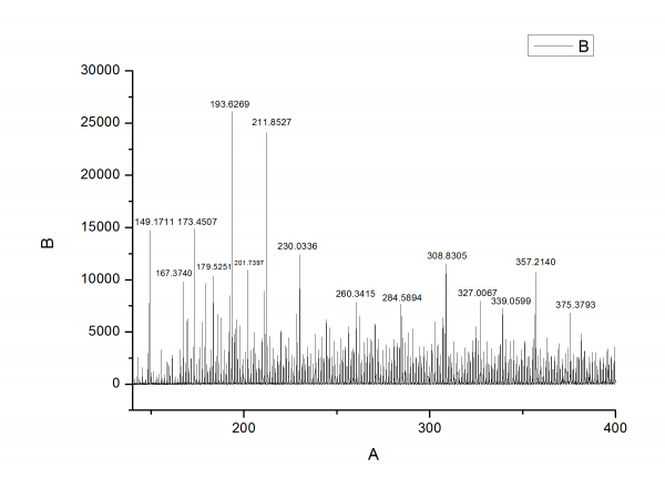 做了个有机反应,百思不得其解产物结构 原贴:http://muchong.com/bbs/viewthread.php?tid=6296158 把ESI-TOF当做救命稻草,却分析不出个所以然来 峰值数据如下: 149.1711 167.3740 173.4507 179.5251 183.5503 193.6269 201.7397 211.8527 230.0336 260.3415 284.5894 308.8305 327.0067 339.0599 357.2140 375.3793 求教各位大神以下问题: 1. 数据放大后显示峰差间隔均为1,是不是说明所有峰都只带一个正电荷?如果存在双电荷峰或三电荷峰的话,是不是会存在0.5和0.33的峰间隔 2. 通常峰值会比较接近整数,但以上数据小数点后的数值非常没有规律,不知是何原因? 3. 以上数据中存在大量的峰差值为6.1,18.2,24.3,看似有一定的规律。但是如果差一个水分子的话,差值应为18.0才对;如果一个H被一个Li取代的话,差值应为6.0。仪器不可能有这么大的误差啊 拜托各位指教一二,感激不尽! |