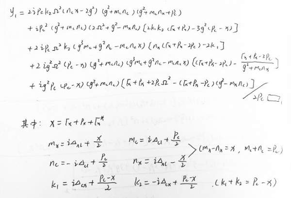 这就是那个方程,其中右下角那个斜线是整个这个大分式的分数线,斜线下面那个带框框的是分母,上面的全是分子。