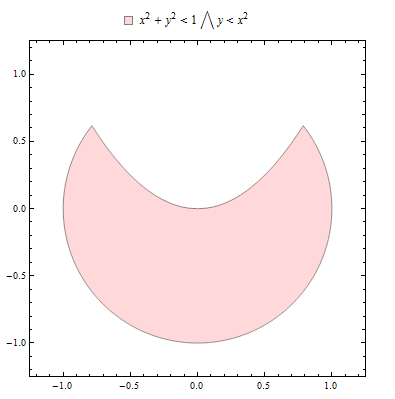 如图所示,要画的是x^2+y^2<1和y<x^2相交的区域,不清楚怎么用Matlab画出来