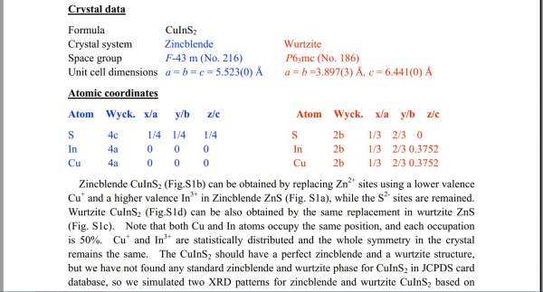 有没有人会模拟纤锌矿的CuInS2的xrd图啊,文章中说是把Cu和In原子替换纤锌矿ZnS中的Zn原子,有人说对纤锌矿ZnS卡片号36-1450就行,但是原子大小不一样他们的XRD图会完全一样吗???下面的图是文献中有关纤锌矿的CuInS2的xrd图的数据。请问他是怎样模拟的啊?请各位帮忙。 1.jpg 2.jpg 3.jpg |