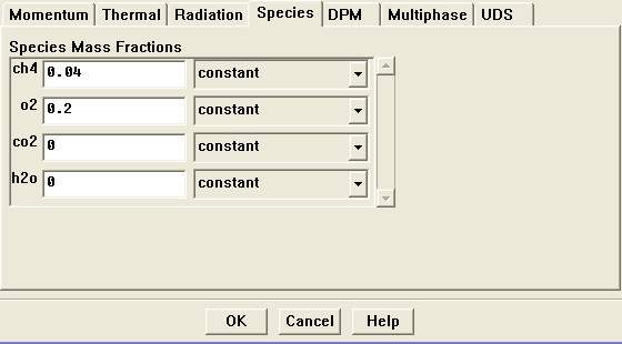 我想利用组分传输模拟甲烷-空气的预混燃烧。在设置速度入口的时候湍流动能和湍流耗散率该怎么进行计算啊,还是说我的Specification Method选错了?然在是在SPECIES中设置混合燃料的质量分数么?