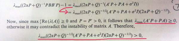如下图,P、Q都是正定矩阵,alpha>0,A是n维方阵,想请问图中用红色标注的三个地方是怎么推导出来的啊???(右上一撇表示矩阵转置) [ Last edited by aazzbbcc123 on 2013-9-4 at 09:37 ] |