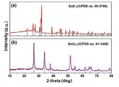 您做的两个物质主物相是SnS和SnO2,基本是纯相,但是还是能够看到少许较弱的小峰,特别是SnO2杂峰很明显。建议将图谱放大看看,考虑杂相是不是SnS2和SnO,它们很容易共生。