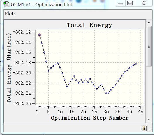 用QST2寻找过度态的时候出现L9999这样的错误,附图为寻找过程中能量的变化曲线图,该怎么解决?像这种情况是不是就不可能找到过渡态?