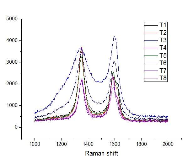 测了8种不同多壁碳纳米管的拉曼光谱,我主要是用以评价碳管结构完整性,也就是得出Id/Ig的值,其中蓝色和褐色的那两条和别的差别比较大,是不是不能直接用强度的比值,而是使用面积比?另外出现这种形状的原因是什么呢? Raman.jpg |