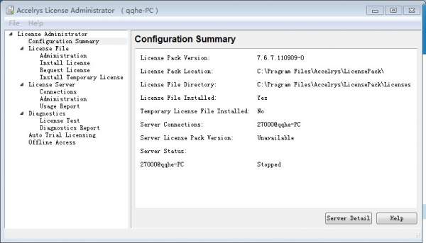 License File Path: C:\Program Files\Accelrys\LicensePack\Licenses