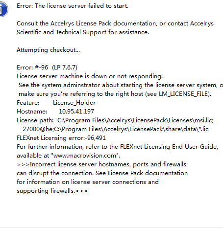 License file list: C:\Program Files\Accelrys\LicensePack\Licenses\msi.lic;