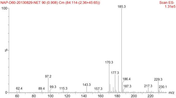 采用TiO2纳米粒子光催化降解非甾体抗炎药萘普生,采用质谱直接进样方式和ESI-模式采集不同时间段的降解产物质谱图。萘普生(M=230)的结构式和降解基本完成时的谱图如下,请教大神帮忙推断一下可能的断裂机理,谢谢! 图片1.jpg 图片2.jpg [ Last edited by 木笔犹开 on 2013-9-9 at 10:32 ] |