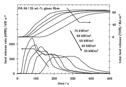 有关锥形量热仪(CONE calorimeter)测试时外加热辐射流量对材料燃烧行为的影响