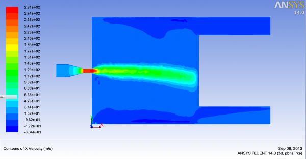 如图,模拟是射流流场,在模型中没有勾选Gravity,喷嘴压差为30MPa,后面为压力出口,喷距是150mm,流体介质是CO2,模拟计算2000步之后的流场结果如图所示,射流有一定程度的向下偏。是否正常?不正常应该从哪里解决,修改欠松弛因子吗? abr-CO2_walls_Pin=50_04_z=0内部流场分布云图轴向速度着色.png |