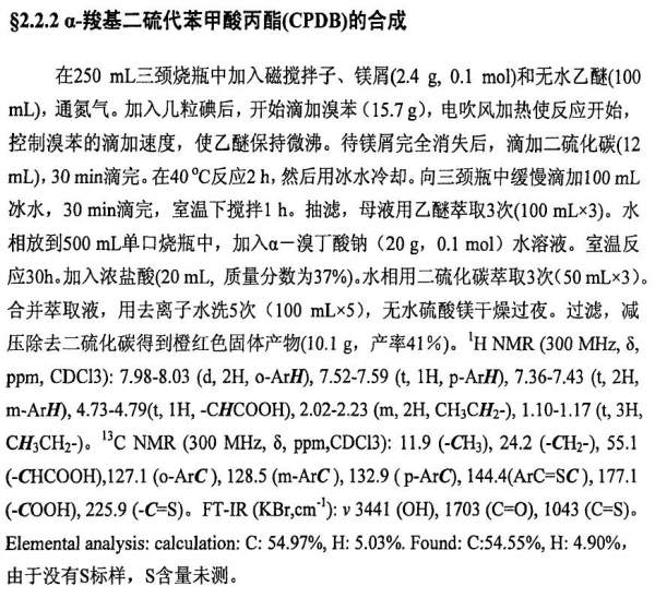 关于二硫代苯甲酸α-羧基丙酯的合成(用于制备RAFT链转移剂)