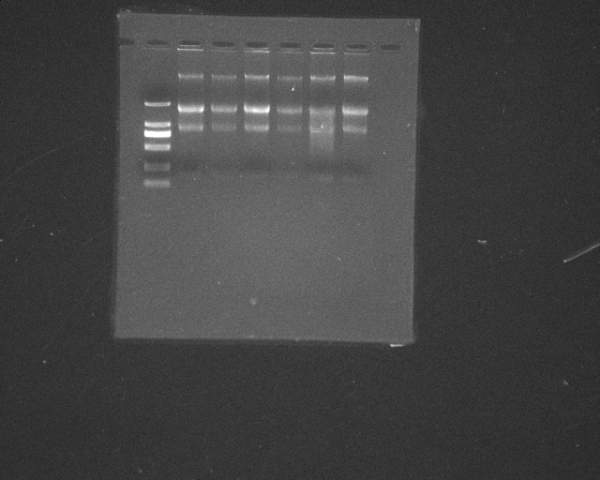 挺好,点样孔有点亮,可能是有蛋白或其他什么杂质的污染。。。还有DNA组没有消化吧