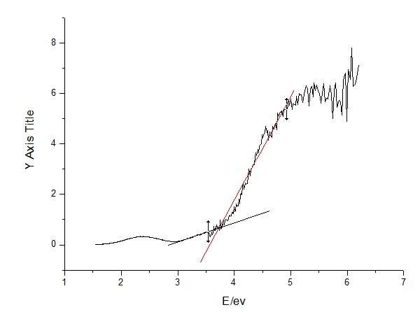 下图是我根据固体紫外的数据做的关于能带的图,据说是对曲线画切线然后外推法与X轴的交点就是该材料的能隙(也叫禁带宽度),但是这条切线从哪个位置开始画呢?请各位大侠指点