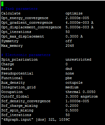 菜鸟一枚,最近在用MS搭石墨烯(6*6超胞)然后在上面给四个C原子加H,用dmol做optimize,但是传到服务器后一直算不了,总是permission denied. 希望大家帮我看看,哪里出了问题,非常感谢! PS:附件依次为:car文件、input文件和最后denied的截图~ car.PNG input2.PNG denied.PNG |