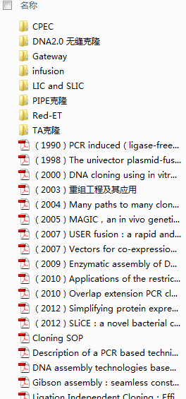 克隆方法全集,现有常用克隆方法的原始文献及应用文献,打包下载