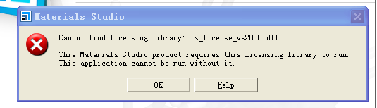 MS5.5安装的时候能用,现在再次运行打不开了,提示:Cannot find licensing library: ls_license_vs2008.dll.