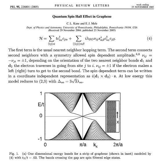 这是那篇很著名的文章。文中给出了格点模型下的系统哈密顿量,然后得到了电子能谱,E-k关系。