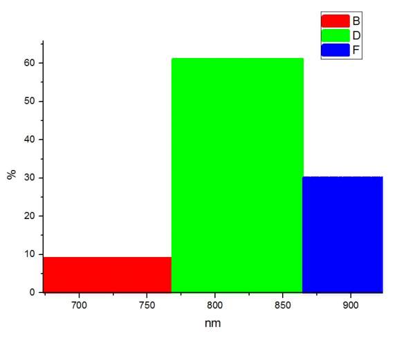 做个粒径分布柱状图,674nm到769nm占9%,769nm到865nm占61%,865nm到923nm占30% 求高手,具体做法,origin与Excel都照 |