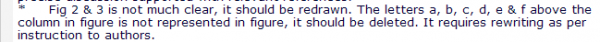 审稿意见里有这么一句: The letters a, b, c, d, e & f above the column in figure is not represented in figure, it should be deleted. It requires rewriting as per instruction to authors. 看了半天不知道啥意思 那些小写字母不是代表差异性嘛,而且我在图下面已经标注出来了 |