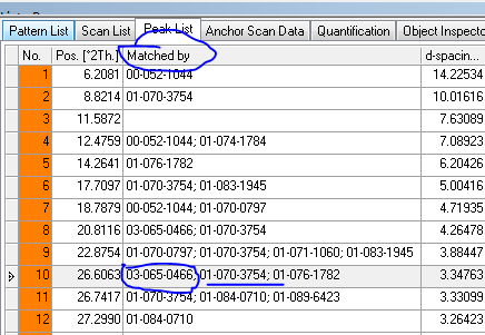 X`Pert Highscore Plus中RIR半定量计算中同一个峰被不同PDF卡片匹配时计算机制?