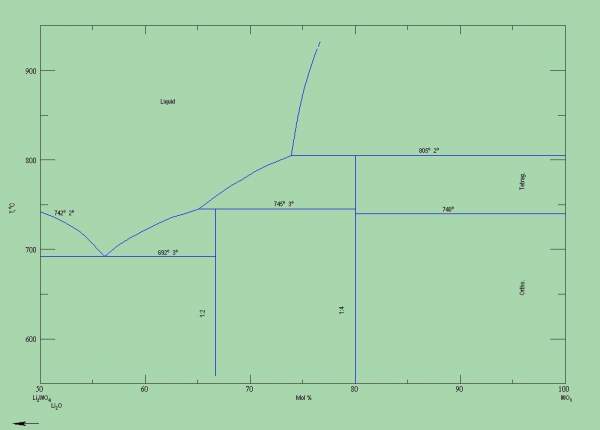求Li2O--WO3二元系的相图或者是Li2CO3--WO3二元系的相图
