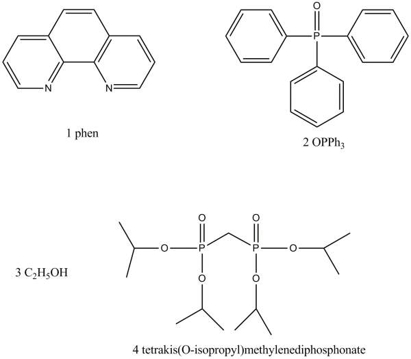 化合物分别是 邻菲罗啉、三苯氧磷、乙醇、亚甲基二磷酸四异丙酯